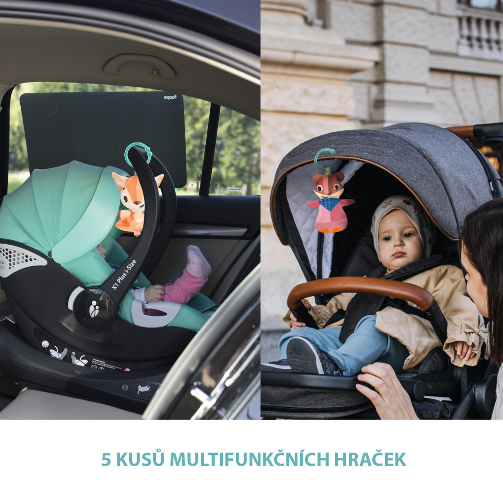 Interaktív keresztrúd és támaszpárna – A 3D interaktív babaszőnyeg a legkisebbek számára nyújt tökéletes teret a fejlődéshez és szórakozáshoz. A plüssjátékok, amelyek érintésre hangot adnak, motiválják a babákat a szem–kéz koordináció gyakorlására, később pedig a fogásra. A játékok könnyen levehetők a keresztrúdról, és rögzíthetők babakocsira, autósülésre vagy formázott támaszpárnára. Támogatást nyújt hason fekvéshez, és segít az idősebb gyermekeknek a helyes kúszópozíció gyakorlásában.