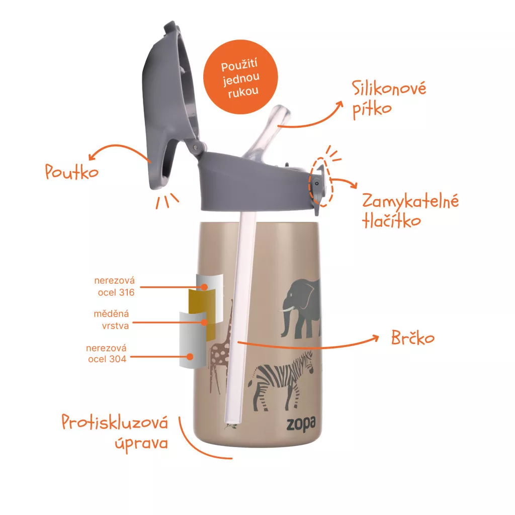 Egy gyermekek számára tervezett termosz, amely az italokat akár 12 órán át melegen, 24 órán át hidegen tartja. Biztonságos, szivárgásmentes, és egy kézzel is könnyen használható.