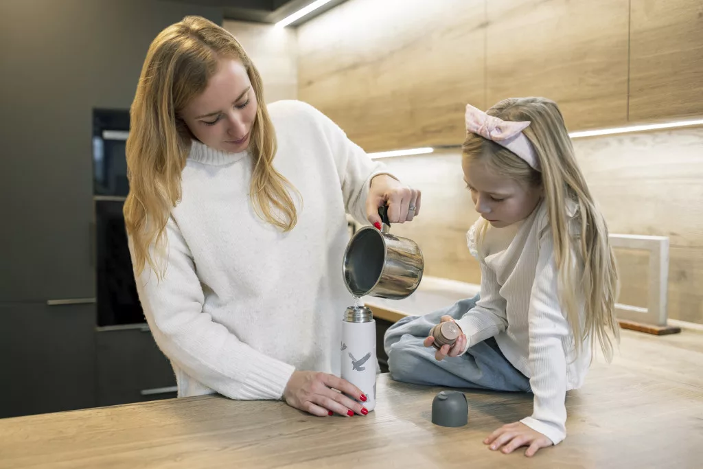 Kiváló minőségű, 400 ml-es folyadéktároló termosz, amely a forró italokat akár 12 órán át, a hidegeket pedig akár 24 órán át megőrzi. Korrózióálló, prémium rozsdamentes acélból készült. A szivárgásmentes fedél megakadályozza a folyadék kiömlését, a felső öntőzár pedig biztosítja a kényelmes használatot még egyenetlen úton autózva is. A dupla zárórendszer gondoskodik arról, hogy a gyermek ne forrázza le magát. A termosz fedele csészeként is használható.