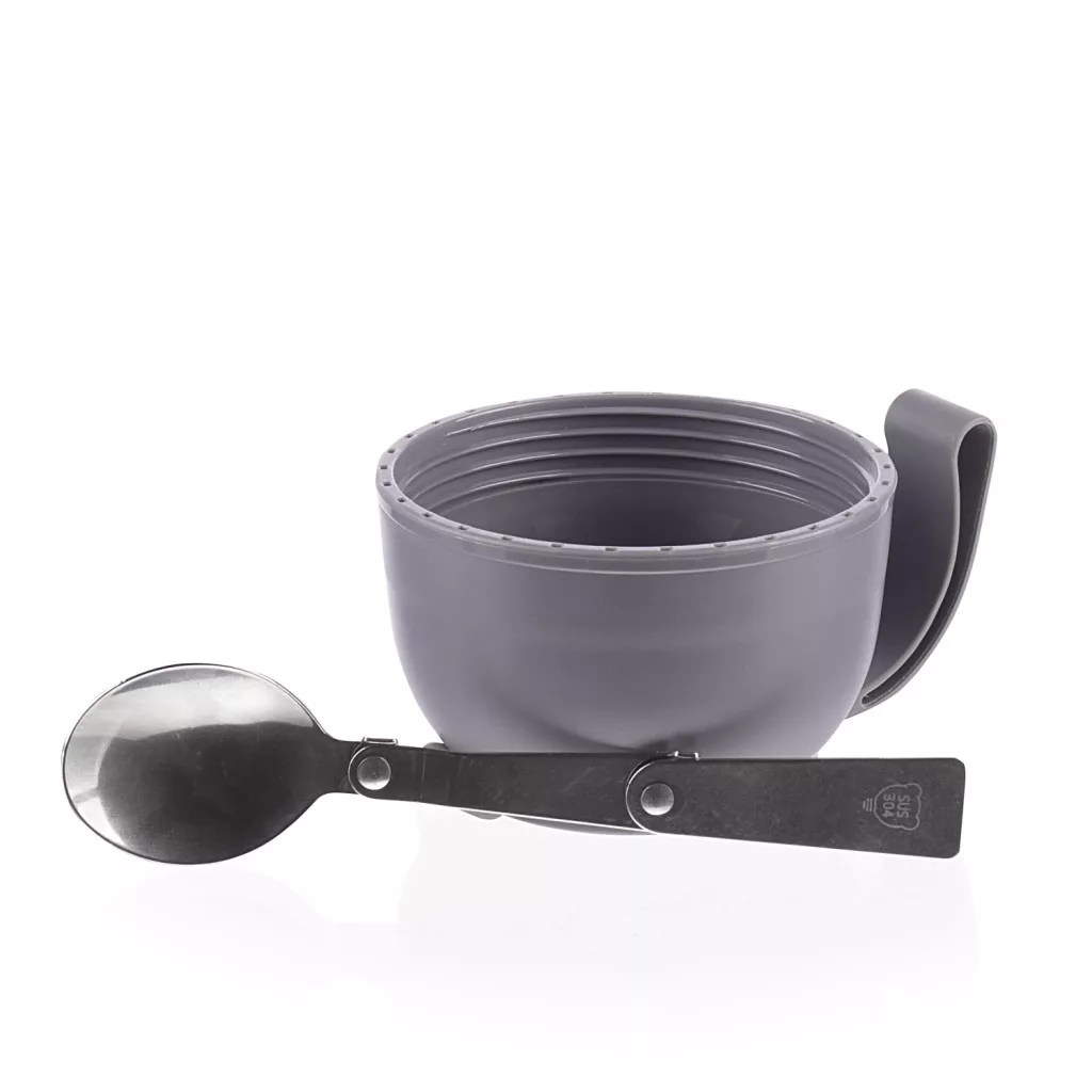 A csomag tartalmaz egy összecsukható kanalat, amely tökéletesen illeszkedik a fedélbe, így bárhol élvezheti a meleg zabkását vagy levest. A termosz fedele pohárként vagy tálként is használható. A felső zárófedél biztonsági szeleppel van ellátva, amely kiengedi a nyomást, így könnyen nyitható, és elkerülhető a gőz okozta égési sérülés.