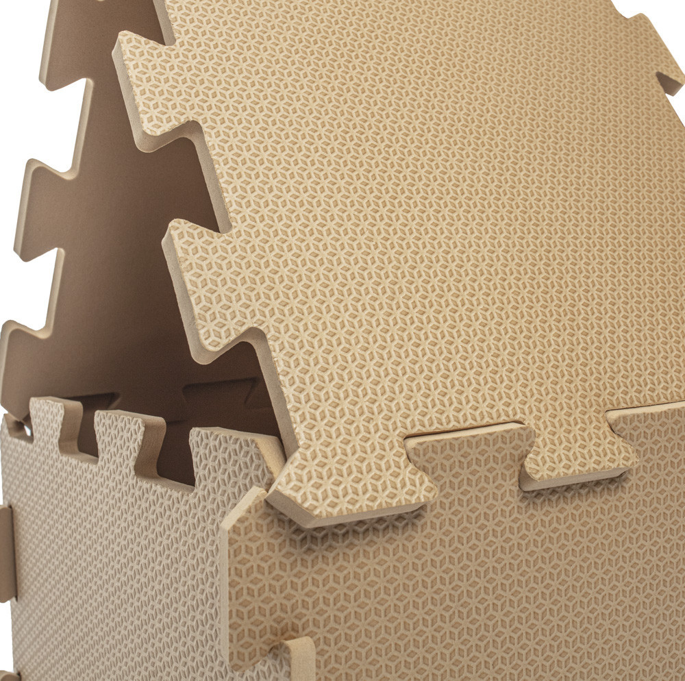 Az egyes elemek mérete 30 × 30 cm, a csomag 9 darab elemet tartalmaz,amelyek tökéletesen illeszkednek egymáshoz. A szőnyeg születéstől használható,biztonságos, kellemes tapintású anyagból készül.