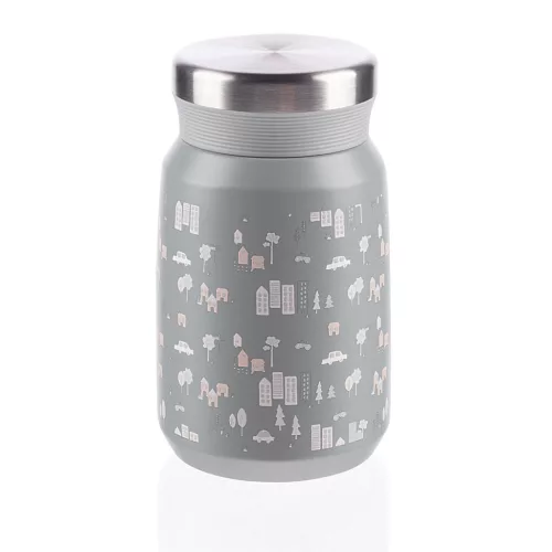 Kiváló minőségű termosz ételekhez és pépekhez, 500 ml-es űrtartalommal, amely akár 12 órán át melegen, és 24 órán át hidegen tartja az ételt. Korrózióálló, kiváló minőségű rozsdamentes acélból készült. A szoros fedél biztosítja, hogy a termosz ne szivárogjon. A vákuumszigetelésnek köszönhetően a forró tartalommal töltött termosz külső felülete nem melegszik fel.