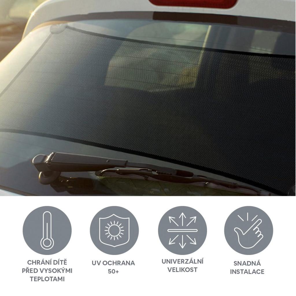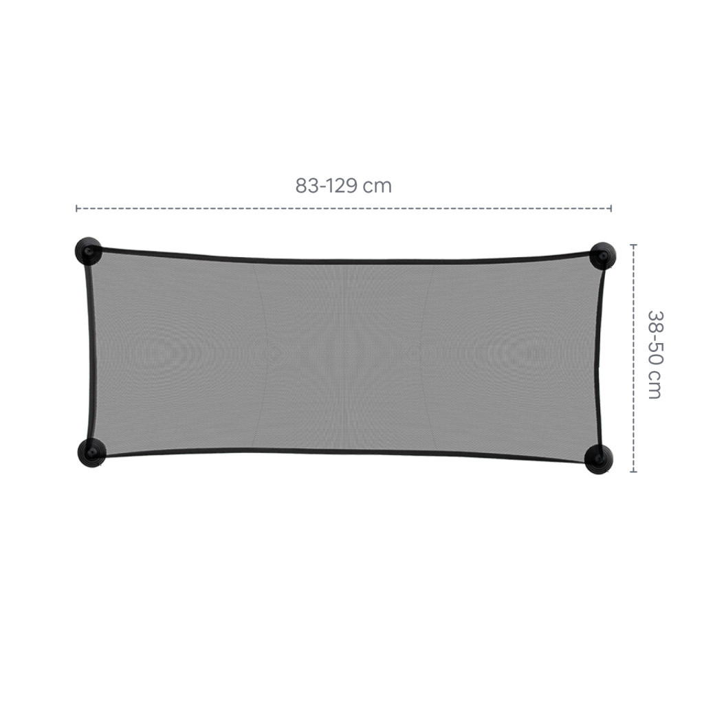 Védő hátsó ablakra való napellenző (82 x 34,5 cm), amely blokkolja az UV-sugárzás akár 97%-át. Könnyen telepíthető és tárolható. Univerzális SUV-okhoz, ferdehátúakhoz, szedánokhoz és kisautókhoz.