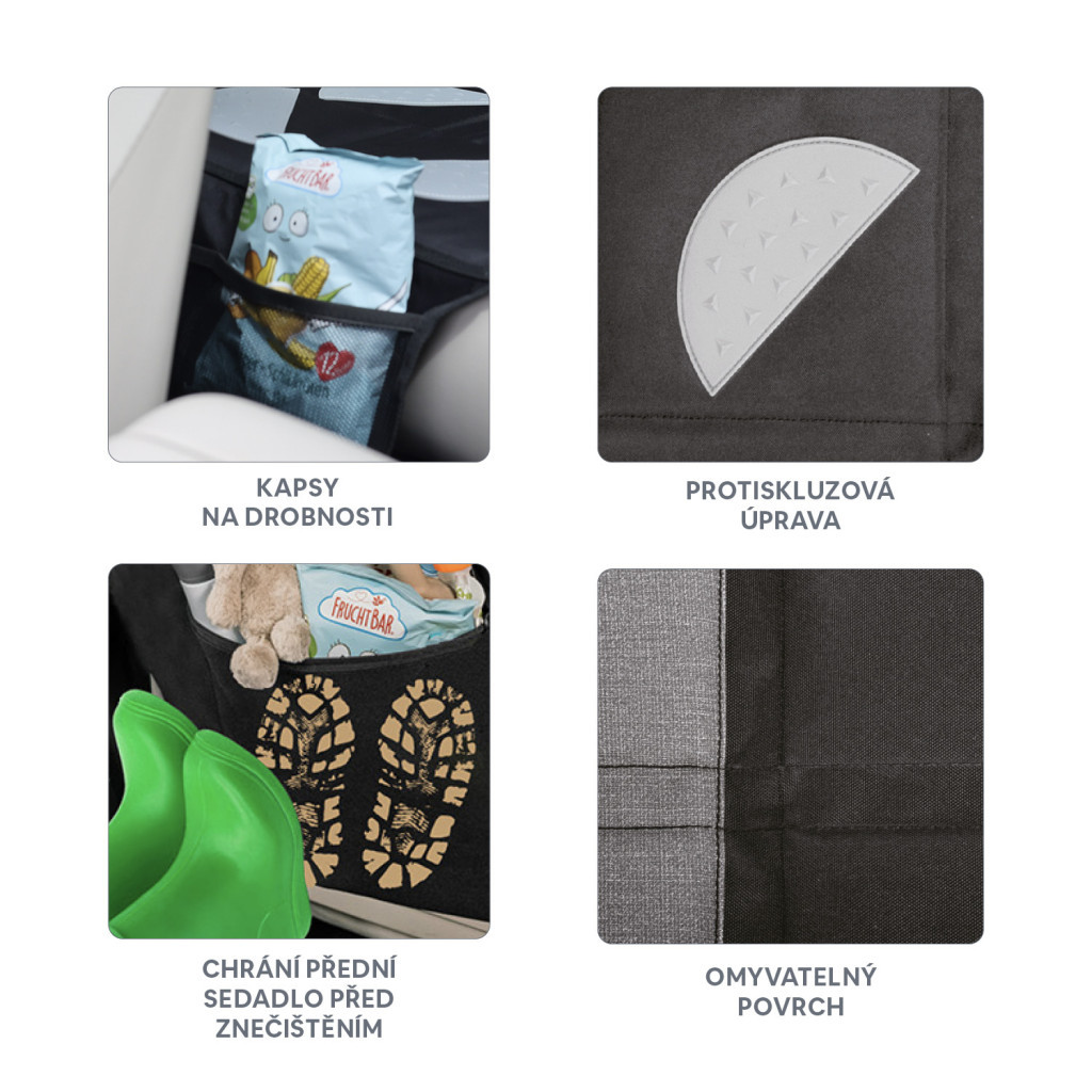 Védje az autóülést, és tartson mindent kéznél a 3 különböző módon használható ülésvédővel. Tökéletes a rendezett és kényelmes családi kirándulásokhoz.