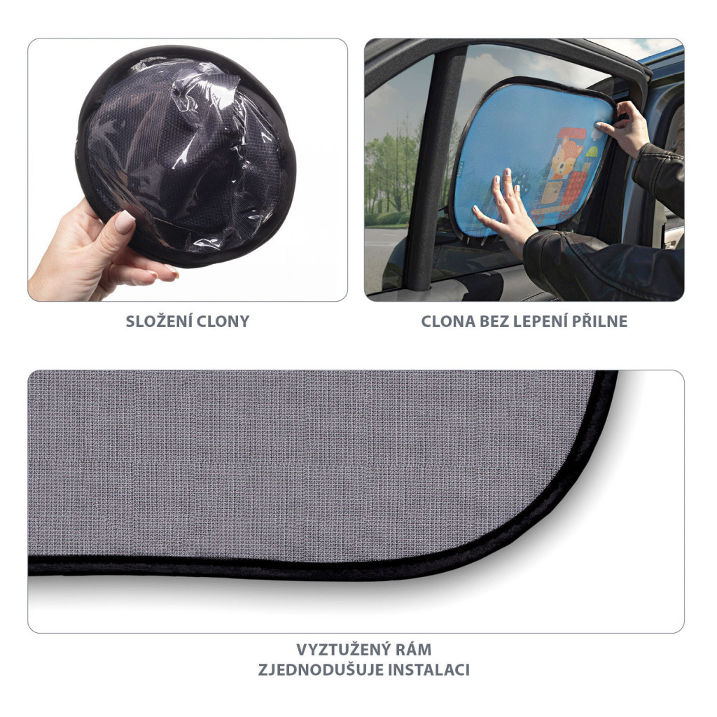 Hálós napellenző védi a gyermeket az autóban a napsugárzástól. UPF 30+ védelemmel rendelkezik. Megerősített kerete megkönnyíti a telepítést és áthelyezést. Könnyen összecsukható, és összehajtva rendkívül helytakarékos. A csomag két darabot tartalmaz.