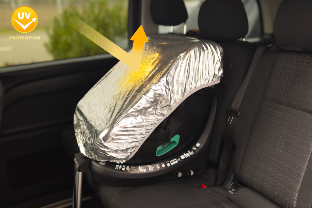 A felület visszaveri a nap sugarait, így megakadályozza az autóülés túlmelegedését – ez az autóülés napvédő huzat.