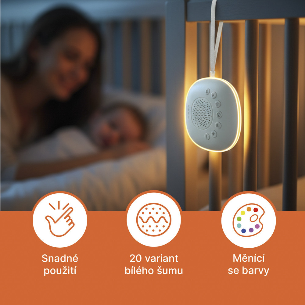 Prémium alvást segítő eszköz fehér zajjal, nyugtató hangokkal és puha fénnyel, amely segíti a babákat az elalvásban otthon vagy útközben – biztonságosan, kényelmesen, bárhol.