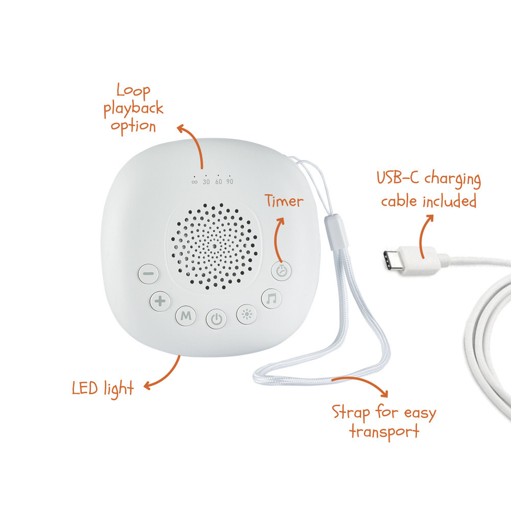Prémium hordozható alvást segítő LED-fénnyel, fehér zajjal és nyugtató hangokkal – kompakt és stílusos segítő a békés alváshoz babáknak és nagyobb gyermekeknek. Akár 20 fehér zaj és nyugtató hang közül választhatsz, puha LED világítással színátmenetes módokkal, időzítővel és praktikus akasztófüllel. Tökéletes otthoni és utazási használatra.