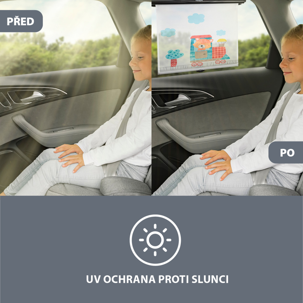 Védje gyermekét a kellemetlen napsugaraktól az autóban! Az aranyos rókamintával díszített napellenző azonnal elnyeri a gyerekek tetszését.