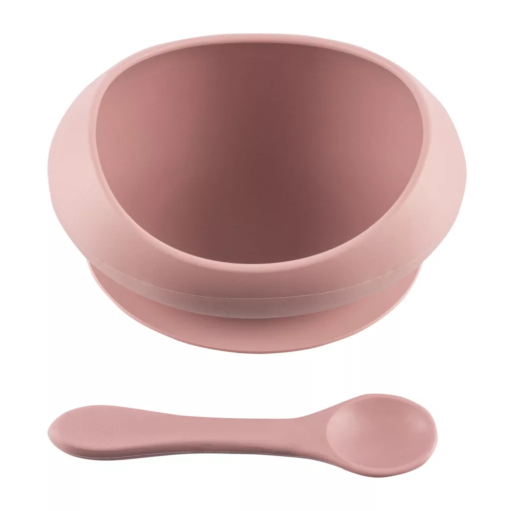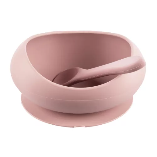 Zopa Szilikon tál tapadókoronggal és kanállal - rózsaszín Old Pink