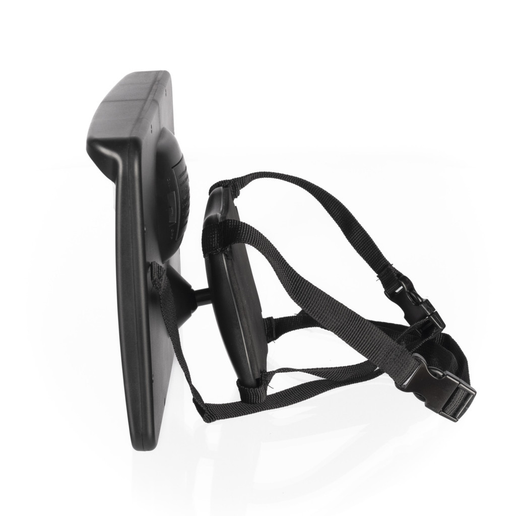 A tükör három fényerősségi fokozatot kínál, és könnyen rögzíthető a fejtámlára állítható pántokkal. Tartós anyagokból készült a törési kockázat minimalizálása érdekében, modern kialakítása pedig tökéletesen illeszkedik bármely jármű belső terébe. A távirányító és a hosszú elem-élettartam kényelmet biztosít még hosszabb utakon is.