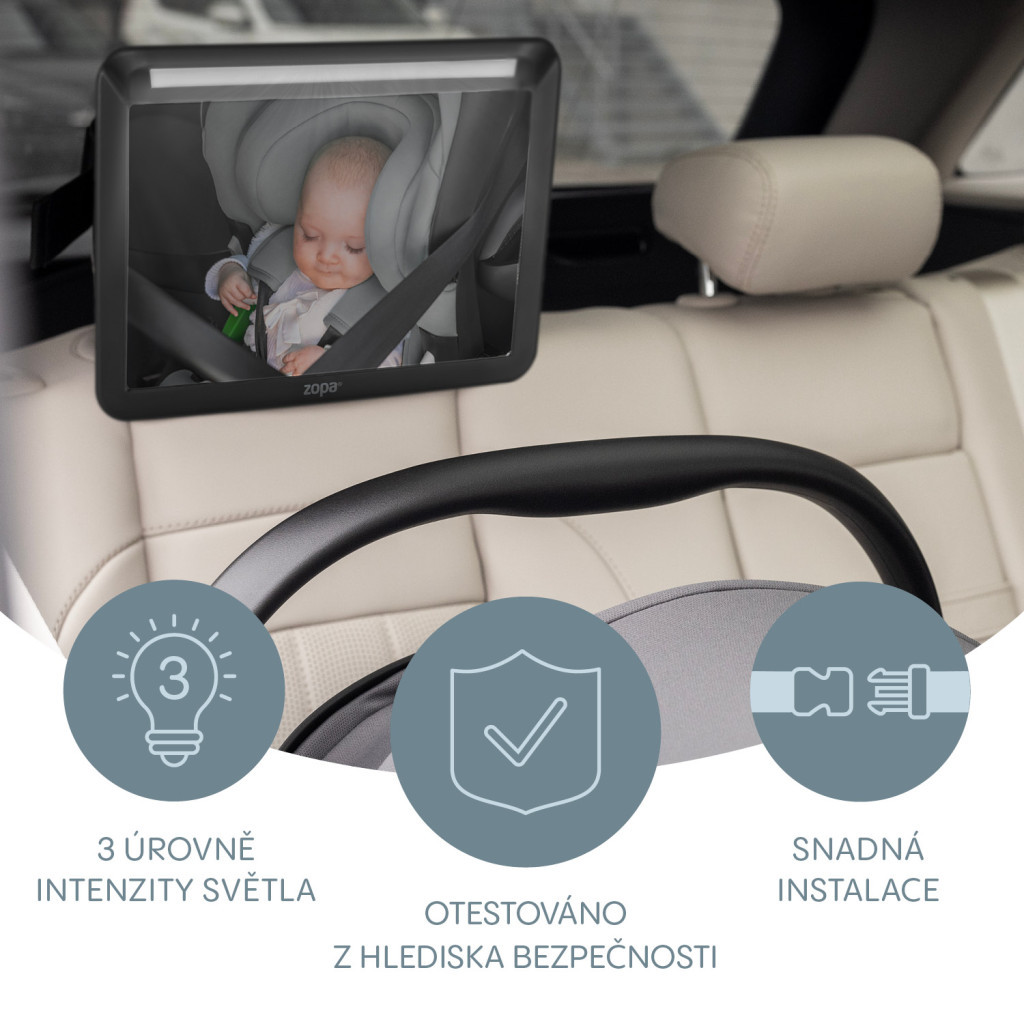 Gondoskodjon a nyugodt utazásról a praktikus LED világítással ellátott tükörrel, amely lehetővé teszi, hogy könnyen ellenőrizze a hátsó üléseken történteket, még rossz fényviszonyok között is. Ideális a menetiránynak háttal elhelyezett autósülésben utazó gyermek megfigyelésére.