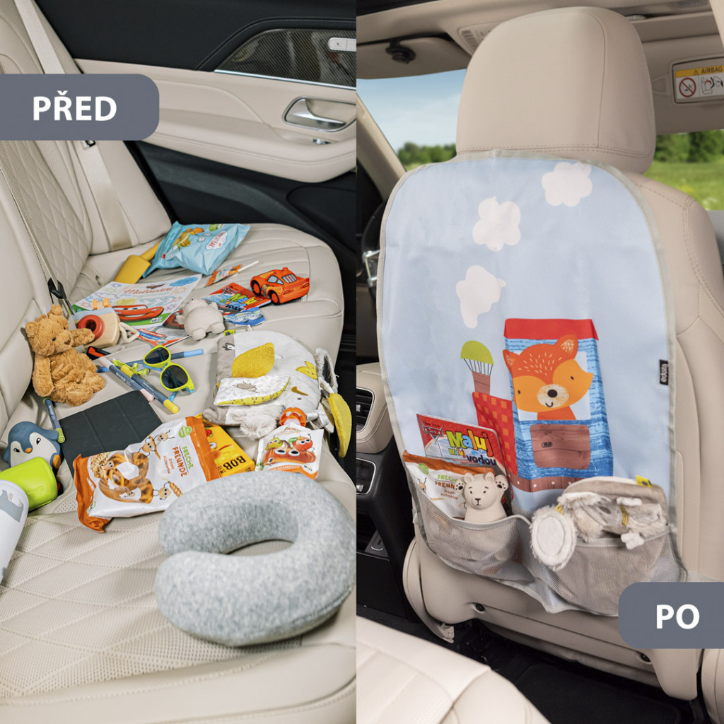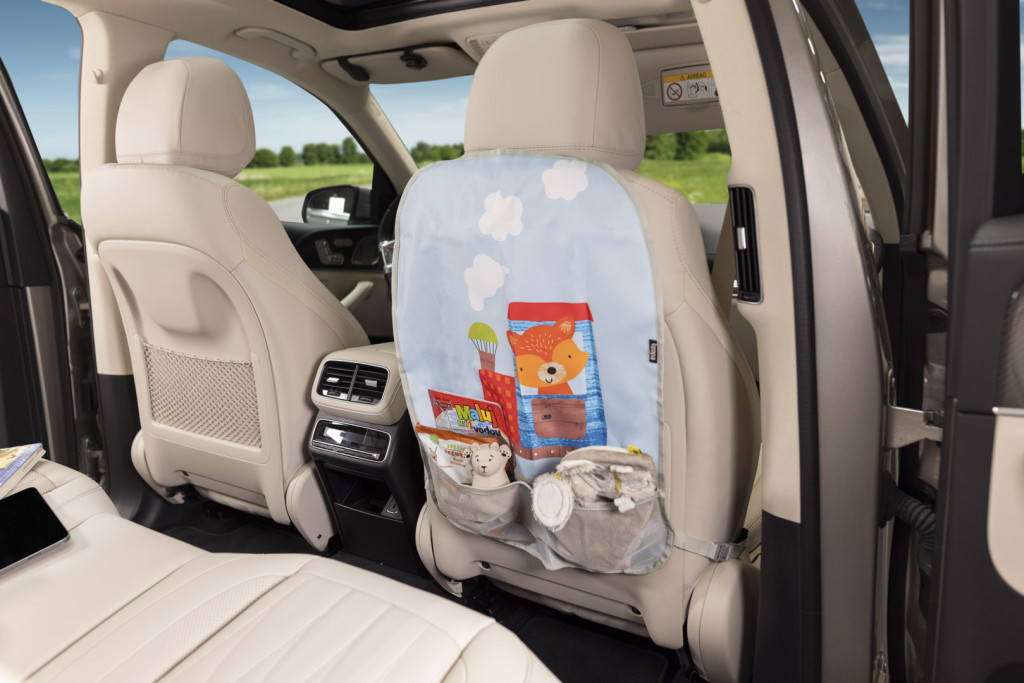 A tárolási funkciója mellett a szervező megvédi az ülést a rugdosástól – többé nem lesznek gyerekcipő nyomok az üléseken.