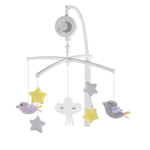 A mozgó plüss játékok finom színekben, természet ihlette motívumokkal, amelyek között egy aranyos állatka dominál, kellemes dallamokkal kísérve, támogatják a gyermek hallását, mozgáskészségét és vizuális érzékelését. A kiságyban kellemes hangulatot teremtenek, amely megnyugtatja a babát és finoman vezeti az álmok birodalmába.
