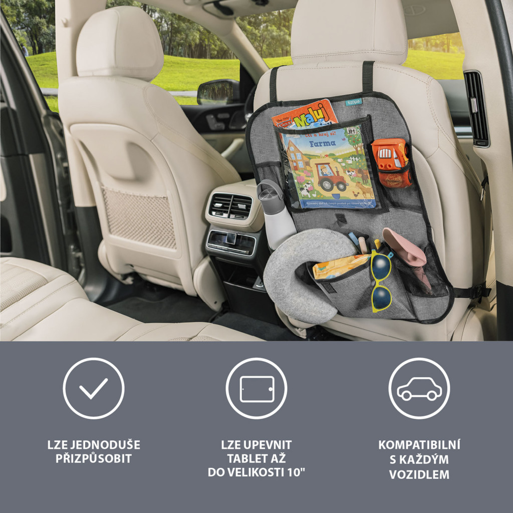 Zopa ülésre akasztható rendszerező + zseb a tablethez Grey