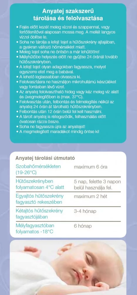 • Fejés után a tejzáróval légmentesen zárható, mélyhűtőbe tehető.
