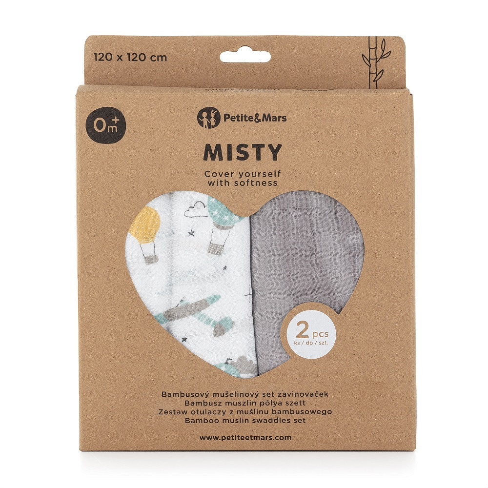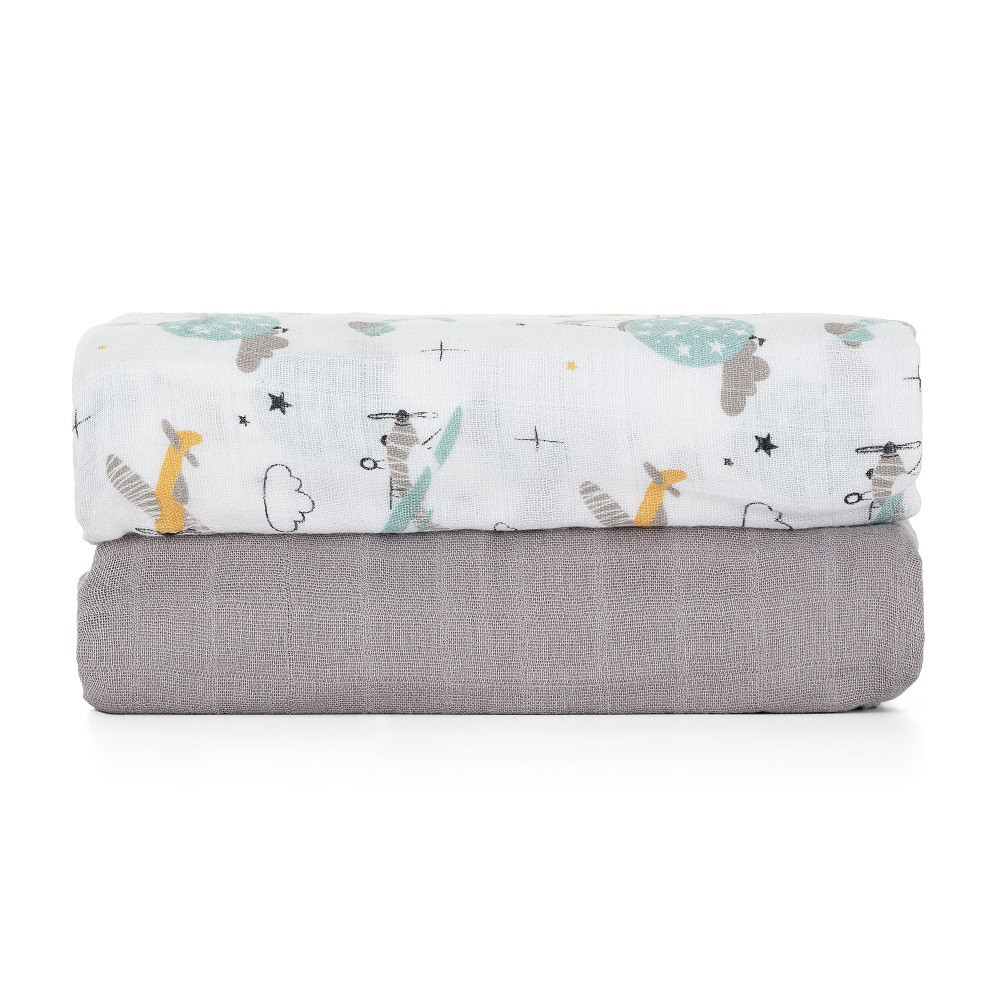 Petite&Mars Bambusz muszlin 2db-os pelenka szett, Misty Grey Planes, 120 x 120 cm