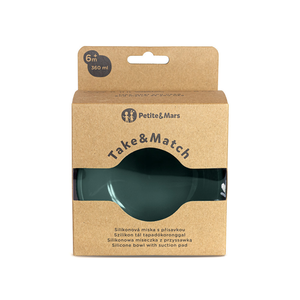 Petite&Mars Szilikon tál tapadókoronggal, Take&Match, Misty Green, 6 hó+