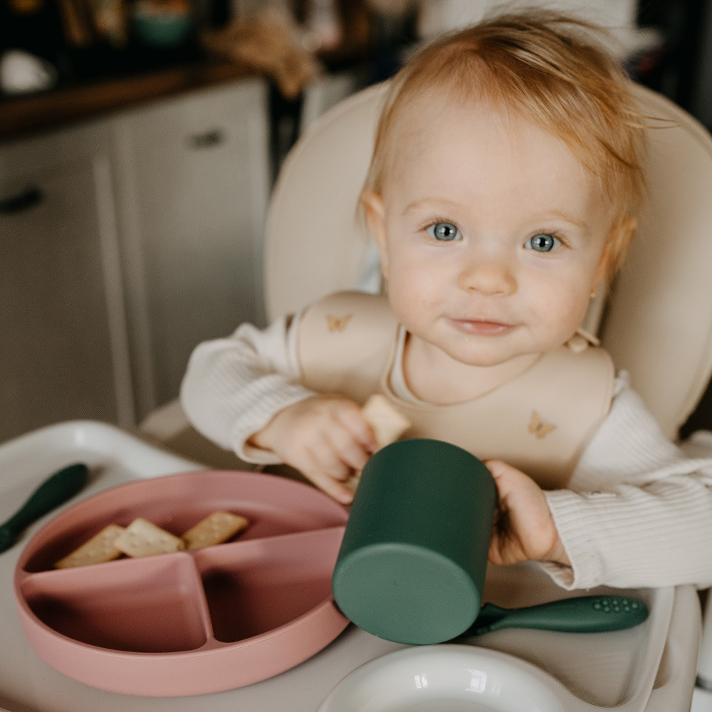 Petite&Mars Szilikon osztott kerek tányér, Take&Match, Dusty Rose, 6 hó+
