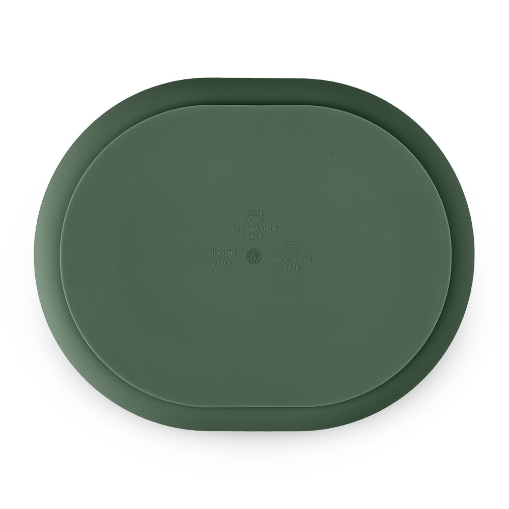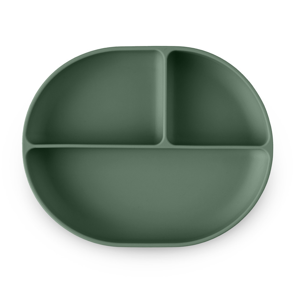 Petite&Mars Szilikon osztott ovális tányér, Take&Match, Misty Green, 6 hó+