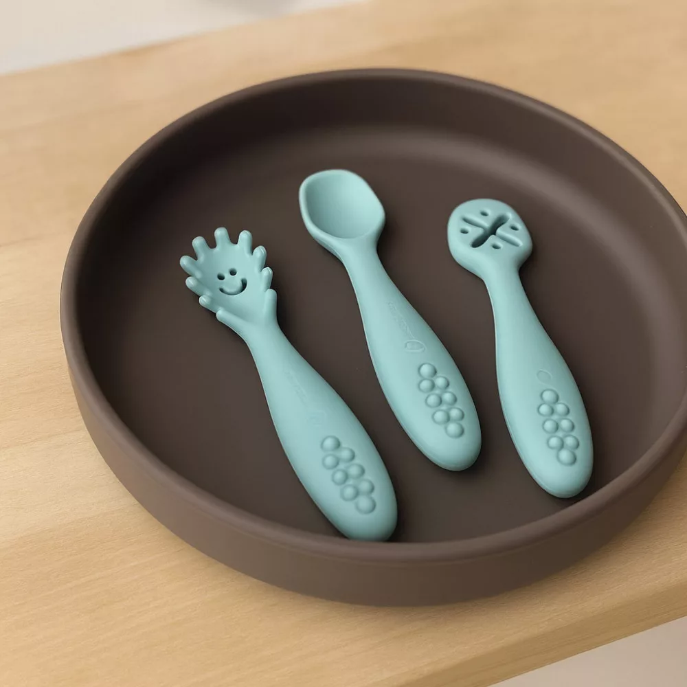 Petite&Mars Szilikon gyakorló kanál szett 3 db Take&Match Sweet Pea 6m+