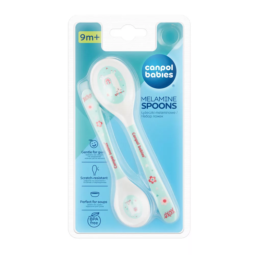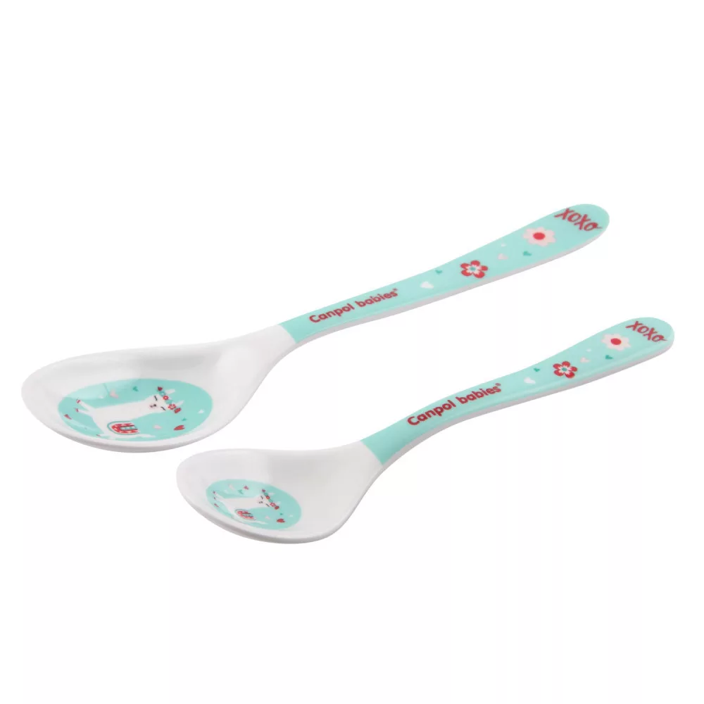 A Canpol babies EXOTIC ANIMALS kollekcióhoz tartozó két kanál, karcálló anyagból készült és lekerekített szélei nem bántják kisbabád gyengéd fogínyét.