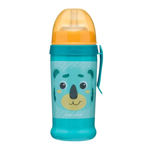 Canpol babies Cseppmentes sport itatópohár, szilikon szívószállal, 350 ml, HELLO LITTLE - türkiz