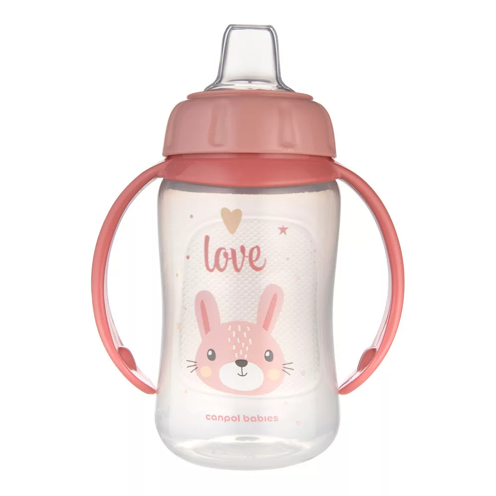 Canpol babies Tanulópohár szilikon ivócsőrrel, CUTE ANIMALS, 320ml, nyuszi