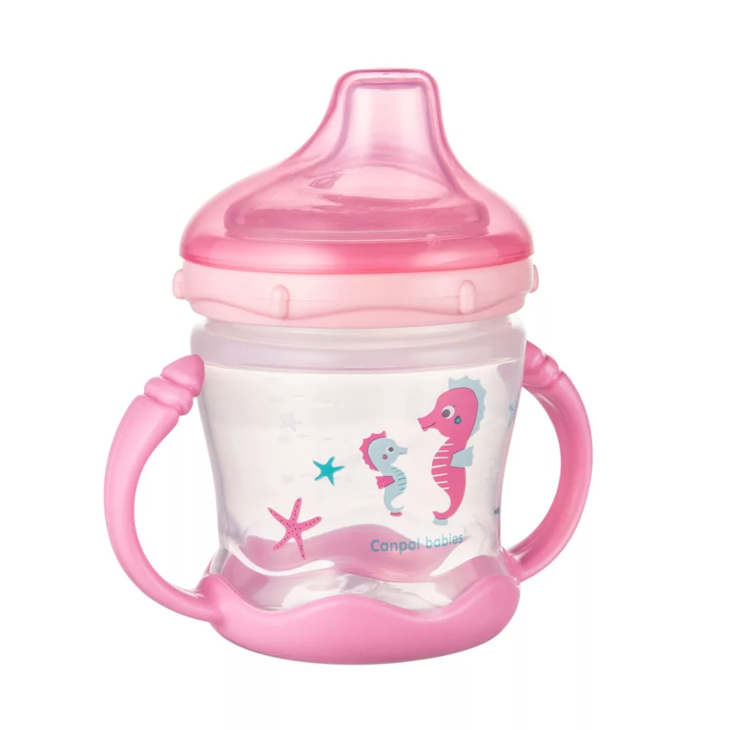 Canpol babies Cseppmentes itatópohár szilikon kifolyóval, 180 ml, LOVE&SEA, rózsaszín