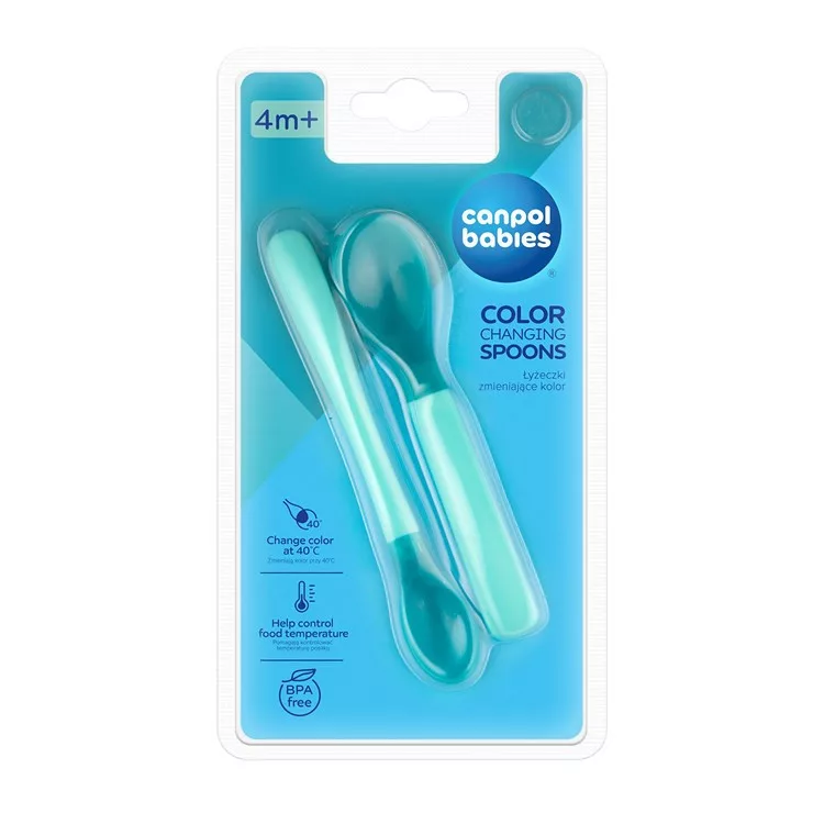 A Canpol babies hőérzékelős kanalaival könnyedén ellenőrizheted mennyire meleg gyermeked étele. Ha az ennivaló hőmérséklete túl magas (kb. 40°C), a kanál színe világosabbra változik.
