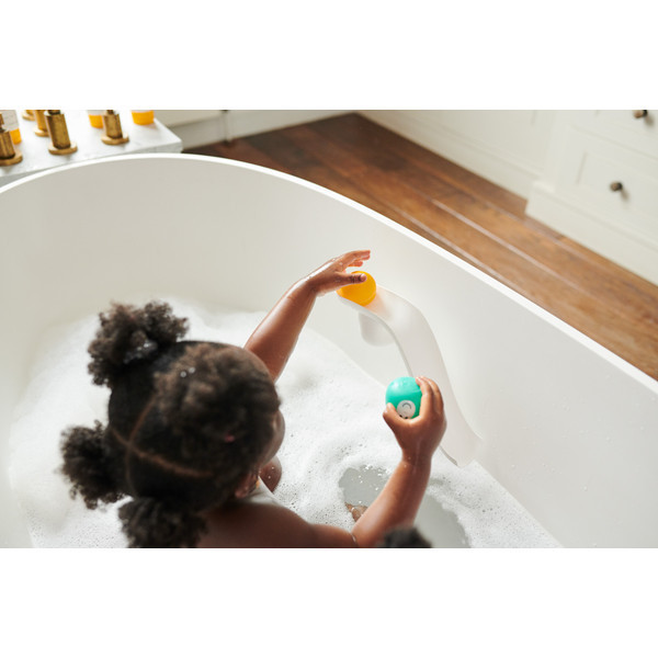 Illesszétek a kád széléhez vagy bármilyen sima felülethez a csúszdát, a puha labdák pedig már gurulhatnak is a habokba!