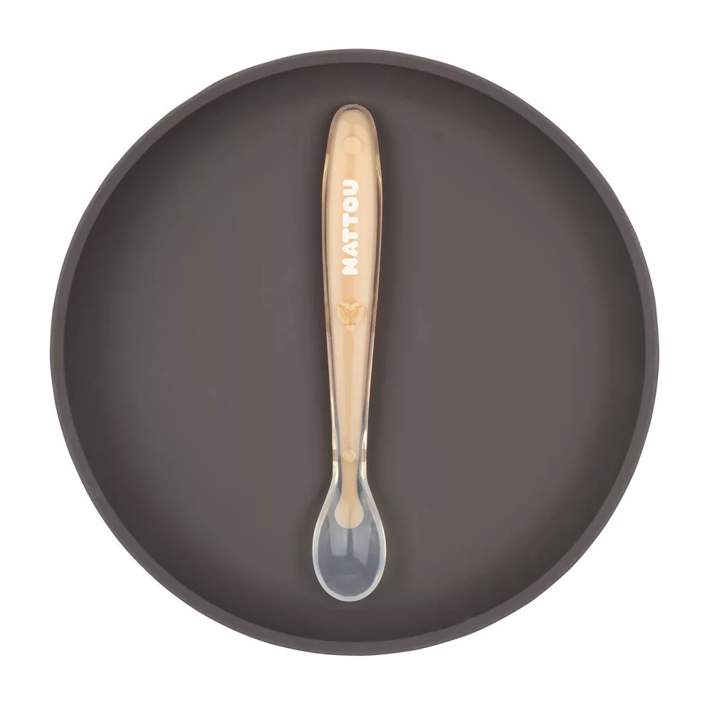 Ez a cuki Nattou szilikon étkészlet nemcsak szemet gyönyörködtető, de szuper praktikus is. A két részes szettben találsz egy lapostányért és egy hozzá passzoló kanalat, mely tökéletes páros a hozzátáplálás kezdetétől egészen a nagyobb falatokig.