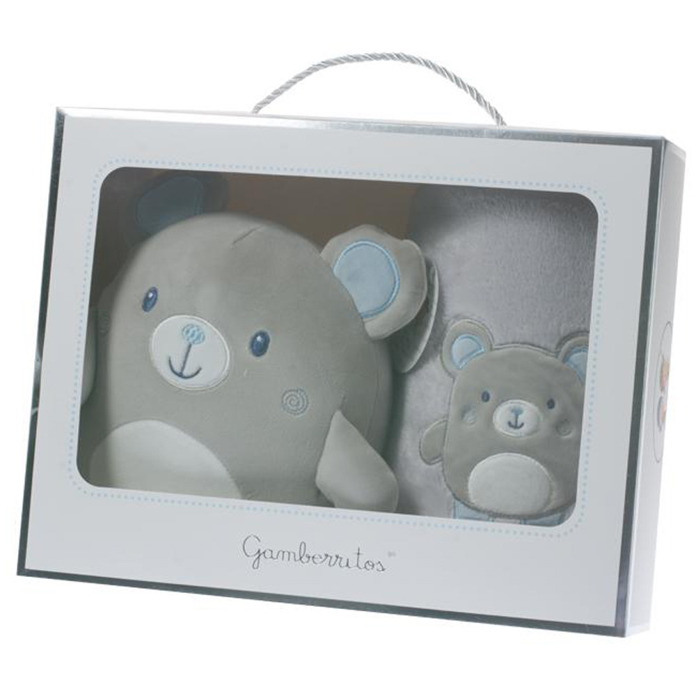 Gamberritos wellsoft takaró 80x110cm plüss játékkal - szürke/kék maci 10757